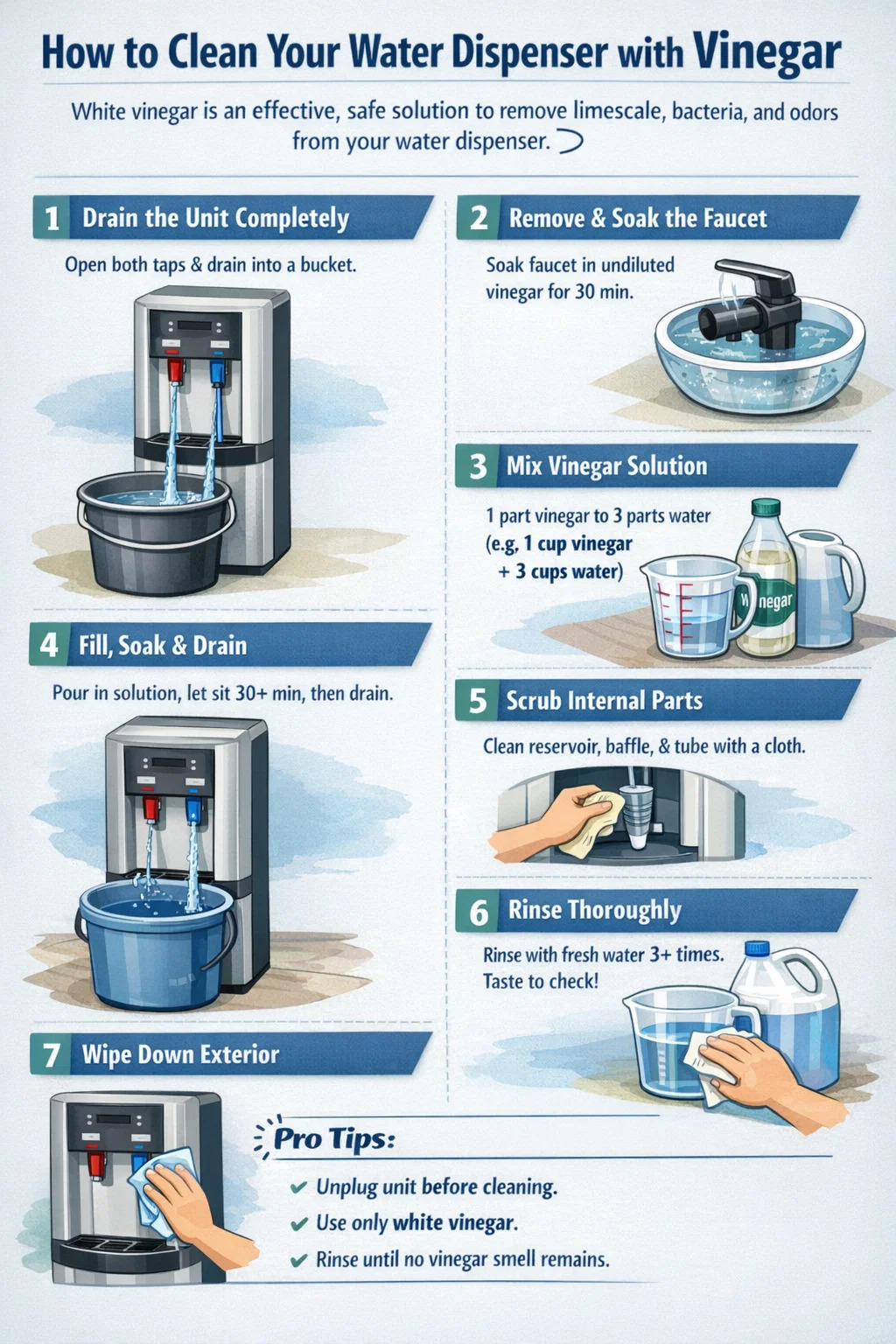 O core vinegar cleaning method applies to all dispenser types, but the specifics vary. Understanding your unit's design ensures you don't miss any surface.
